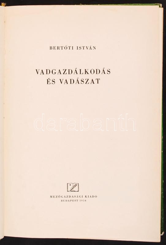 Bertóti István: Vadgazdálkodás és vadászat. Bp., 1956. Mezőgazdasági k... https://www.darabanth.com/de/209-Fernauktion/209.0/Andere-Sammelgebiete/Bucher-Jagd~200350/Bertoti-Istvan-Vadgazdalkodas-es-vadaszat-Bp-1956-Mezogazdasagi-kiado~II860859
