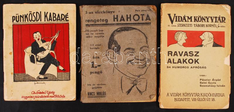 3 db háború előtti vicckönyv: Pünkösdi kabaré, Hahota, Ravasz alakok https://www.darabanth.com/de/209-Fernauktion/209.0/Andere-Sammelgebiete/Bucher-Sonstige-Raritaten~200375/3-db-haboru-elotti-vicckonyv-Punkosdi-kabare-Hahota-Ravasz-alakok~II855690