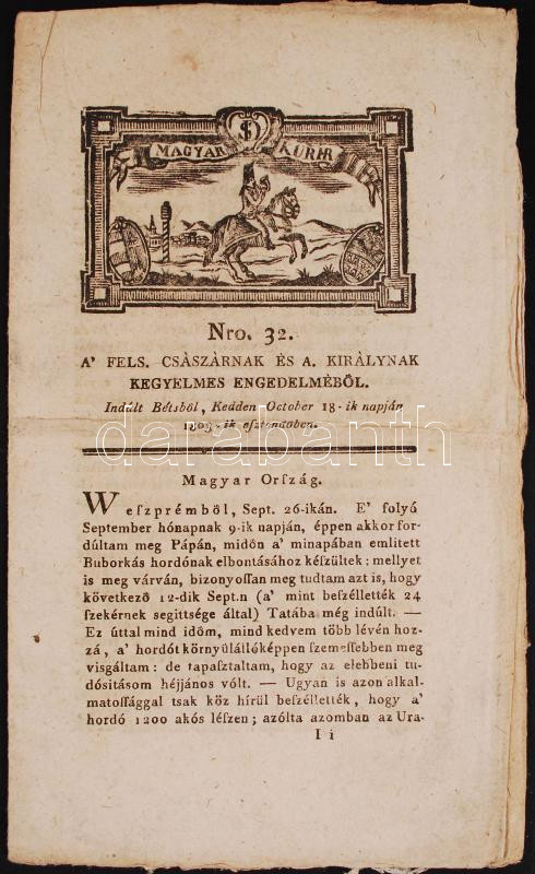1803 A Magyar Kurír c. lap száma 504p. https://www.darabanth.com/de/209-Fernauktion/209.0/Andere-Sammelgebiete/Drucksachen~600132/1803-A-Magyar-Kurir-c-lap-szama-504p~II855697