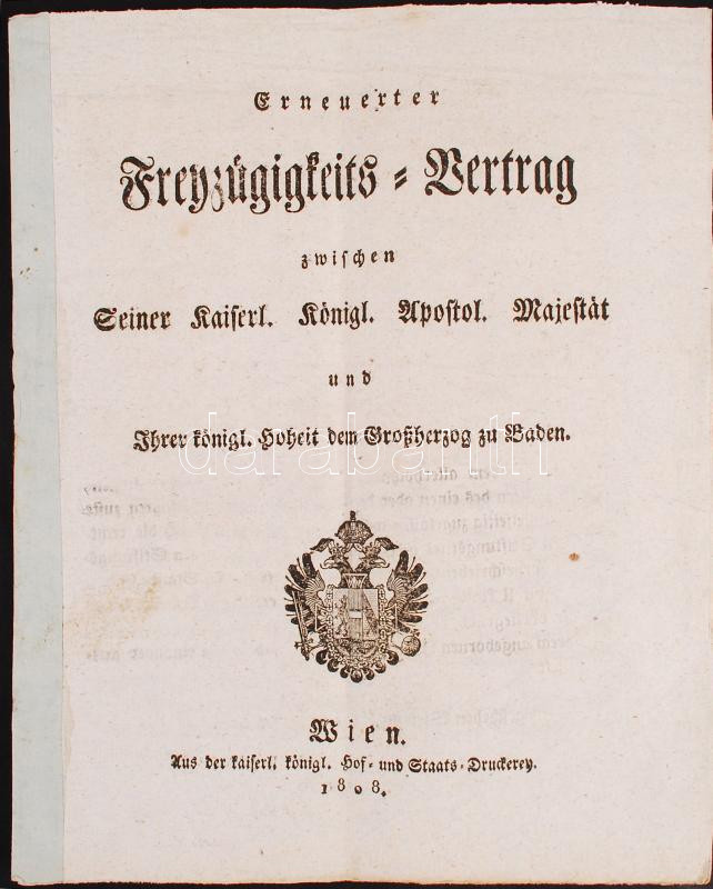 1808 Szabadkereskedelmi egyezmény (Ausztria-Baden) szövege / Freetrade... https://www.darabanth.com/de/209-Fernauktion/209.0/Andere-Sammelgebiete/Drucksachen~600132/1808-Szabadkereskedelmi-egyezmeny-Ausztria-Baden-szovege-Freetrade-contract-between-Austria-an~II855746