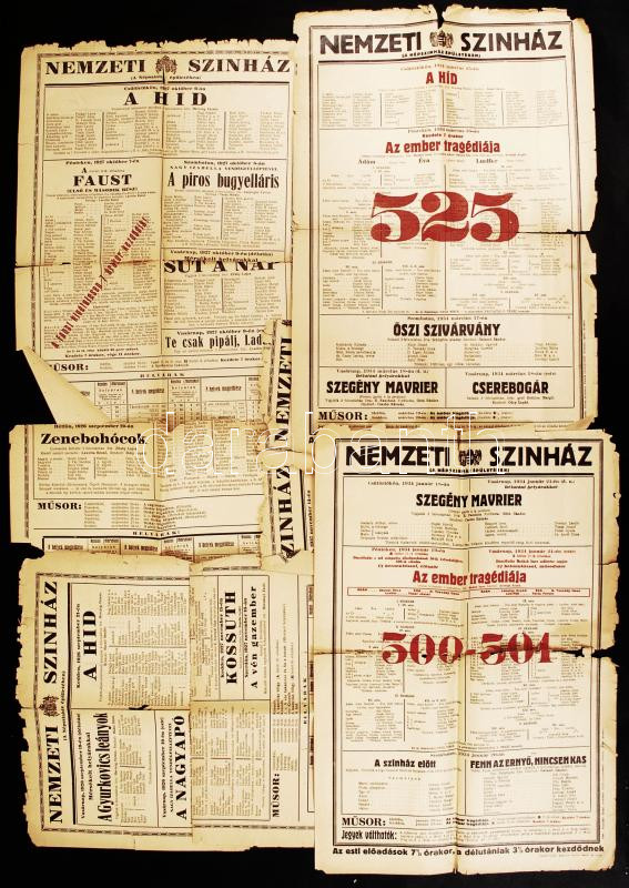 1927-1934 5 db színházi plakát nagy szakadásokkal (Nemzeti Színház) https://www.darabanth.com/de/209-Fernauktion/209.0/Andere-Sammelgebiete/Drucksachen~600132/1927-1934-5-db-szinhazi-plakat-nagy-szakadasokkal-Nemzeti-Szinhaz~II844655