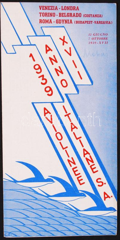 1939 Velence-London, Torino-Belgrád, Róma-Gdynia vonalon közlekedő rep... https://www.darabanth.com/de/209-Fernauktion/209.0/Andere-Sammelgebiete/Drucksachen~600132/1939-Velence-London-Torino-Belgrad-Roma-Gdynia-vonalon-kozlekedo-repulogepek-menetrendje-~II856901
