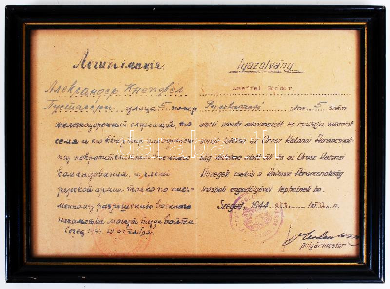 1944 Szeged, Orosz és magyar nyelvű, lakás és lakóinak orosz katonai v... https://www.darabanth.com/de/209-Fernauktion/209.0/Andere-Sammelgebiete/Drucksachen~600132/1944-Szeged-Orosz-es-magyar-nyelvu-lakas-es-lakoinak-orosz-katonai-vedelmerol-szolo-igaz~II833286
