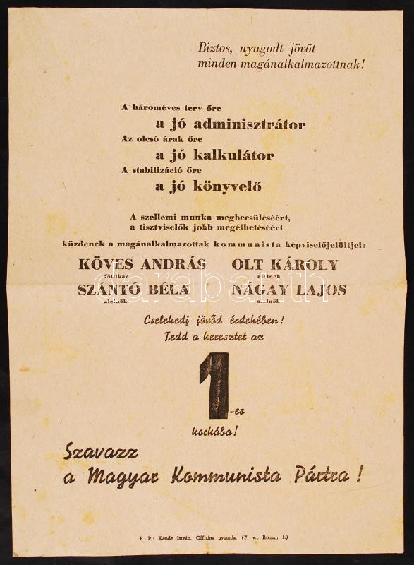 1945 Magyar Kommunista Párt politikai proganda röplap https://www.darabanth.com/de/209-Fernauktion/209.0/Andere-Sammelgebiete/Drucksachen~600132/1945-Magyar-Kommunista-Part-politikai-proganda-roplap~II856875