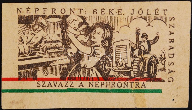 1949 "Népfront: Béke, jólét, szabadság! Szavazz a Népfrontra!" kismére... https://www.darabanth.com/de/209-Fernauktion/209.0/Andere-Sammelgebiete/Drucksachen~600132/1949-Nepfront-Beke-jolet-szabadsag-Szavazz-a-Nepfrontra-kismeretu-ropcedula-7-5x4-~II860680