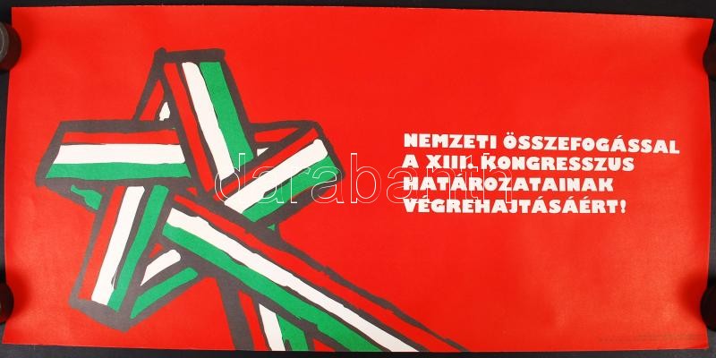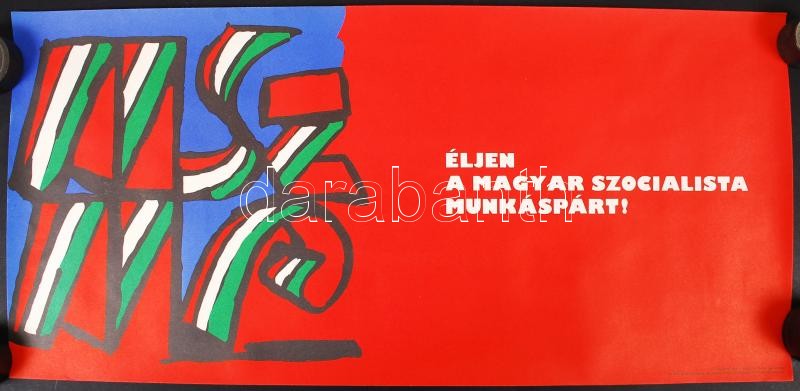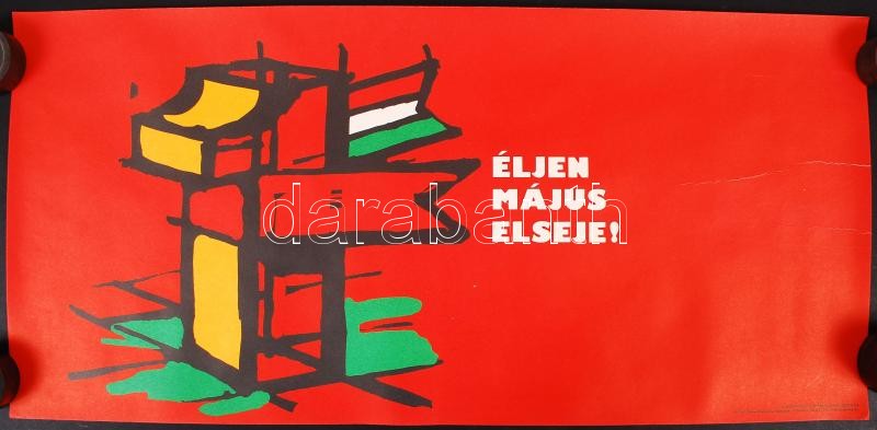 Beschreibung: 1987 Éljen május 1. és még további 5 jelmondat a felvonulók számára, 6 db szalagplakát tekercsben, 67x32 cm
