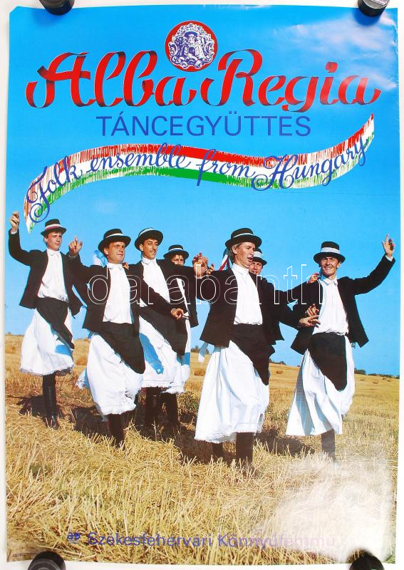 Alba Regia táncegyüttest népszerűsítő plakát, tekercsben, 84x59 cm https://www.darabanth.com/de/209-Fernauktion/209.0/Andere-Sammelgebiete/Drucksachen~600132/Alba-Regia-tancegyuttest-nepszerusito-plakat-tekercsben-84x59-cm~II854633