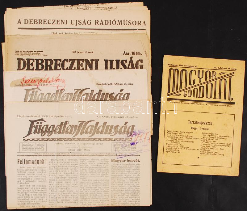 cca 1934-1944 7 db újság, a Magyar Gondolat, Független Hajdúság és a D... https://www.darabanth.com/de/209-Fernauktion/209.0/Andere-Sammelgebiete/Drucksachen~600132/cca-1934-1944-7-db-ujsag-a-Magyar-Gondolat-Fuggetlen-Hajdusag-es-a-Debreceni-Ujsag-szamai~II858574