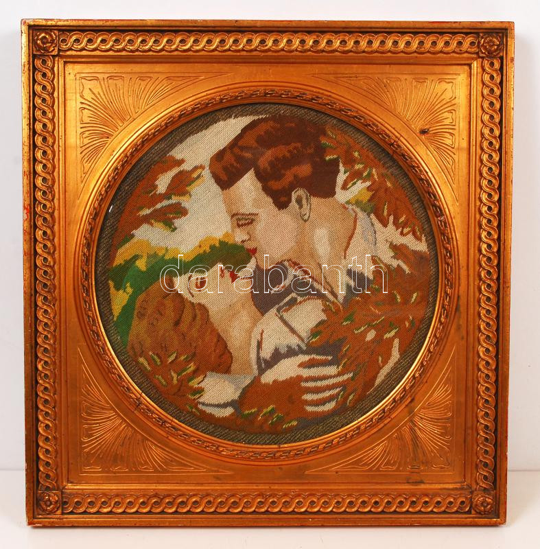 Beschreibung: Dekoratív antik képkeret, benne goblein képpel, külső méret:38×37 cm, d:28 cm