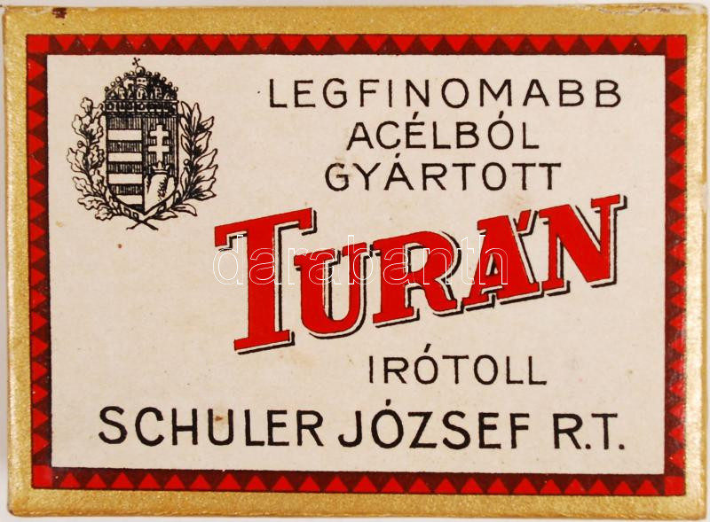 cca 1930 Schuler József R.T. "Turán írótoll" tollhegy doboz https://www.darabanth.com/de/209-Fernauktion/209.0/Andere-Sammelgebiete/Flohmarkt~200355/cca-1930-Schuler-Jozsef-RT-Turan-irotoll-tollhegy-doboz~II858071