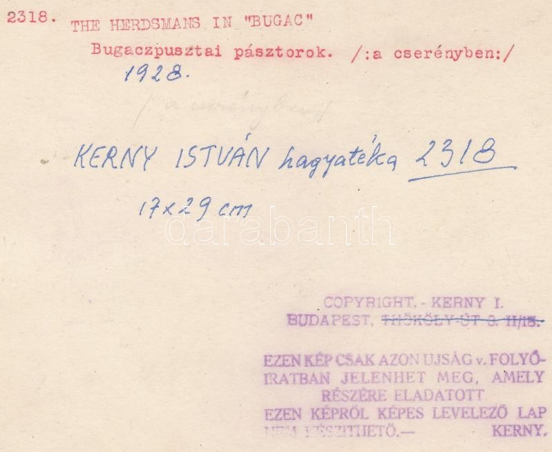 1928 Kerny István (1879-1963): Bugaczpusztai pásztorok a cserényben, v... https://www.darabanth.com/de/209-Fernauktion/209.0/Andere-Sammelgebiete/Foto~200367/1928-Kerny-Istvan-1879-1963-Bugaczpusztai-pasztorok-a-cserenyben-vintage-neprajzi-foto-sze~II854988