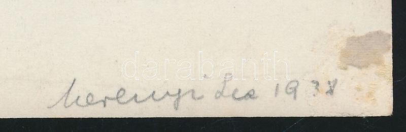 Beschreibung: 1938 Merényi Lea (Szentpál Olga tánccsoport) színpadi jelenete, jelzetlen vintage fotó Szentpál Olga hagyatékából, feliratozva, a kép sarka hiányzik, 17x13 cm