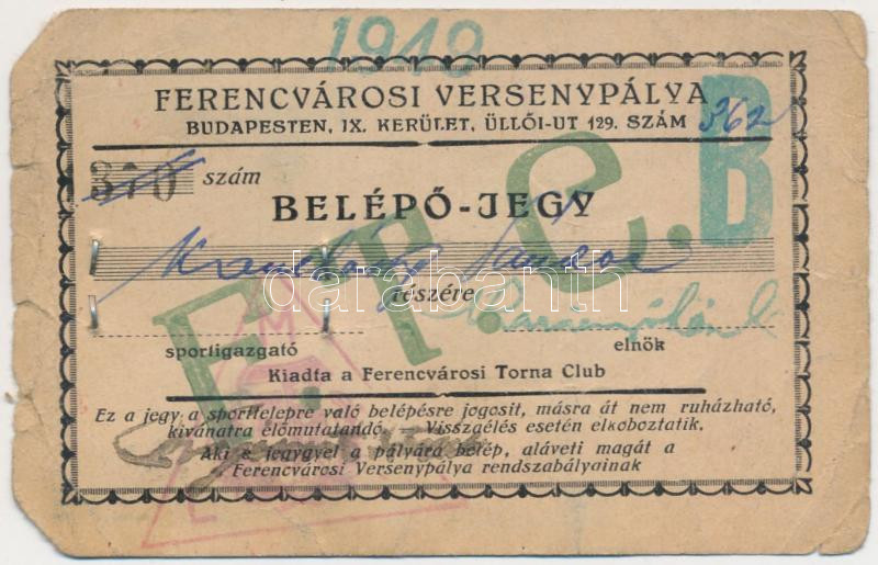 1949 Bp., Ferencvárosi Torna Club által kiállított személyre szóló fén... https://www.darabanth.com/de/209-Fernauktion/209.0/Andere-Sammelgebiete/Foto~200367/1949-Bp-Ferencvarosi-Torna-Club-altal-kiallitott-szemelyre-szolo-fenykepes-belepojegy~II857062