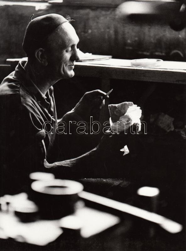 1975 Féner Tamás (1938-): Tízórai Csepelen, jelzetlen, bemutatva a Magyarország ma című fotókiállításon 1975-ben, a Magyar Munkásmozgalmi Múzeumban, 24x18 cm