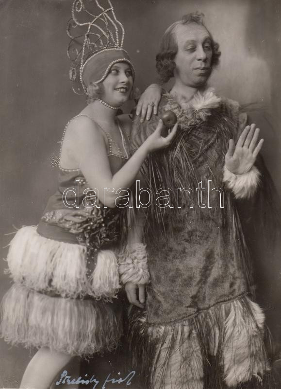 Beschreibung: cca 1910-1920 Strelisky fiók: Éva ismét az almával próbálkozik, de az csak egyszer jött be…., vintage fotó elől aláírva, 19x14 cm