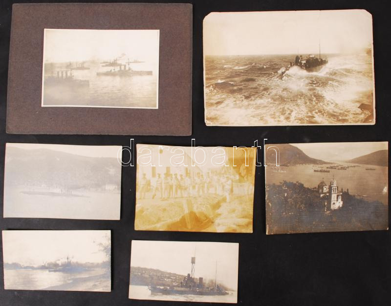 Beschreibung: cca 1914-1918 Hadihajókról és tengerészekről készült fotók, 7 db, 9x5 és 15x10 cm közötti méretekben /