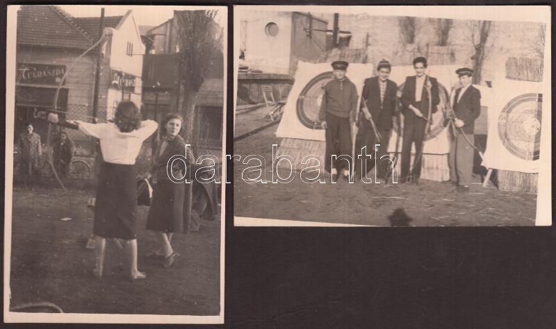 cca 1950 2 db íjászattal kapcsolatos fotó, 9x6 cm https://www.darabanth.com/de/209-Fernauktion/209.0/Andere-Sammelgebiete/Foto~200367/cca-1950-2-db-ijaszattal-kapcsolatos-foto-9x6-cm~II858391