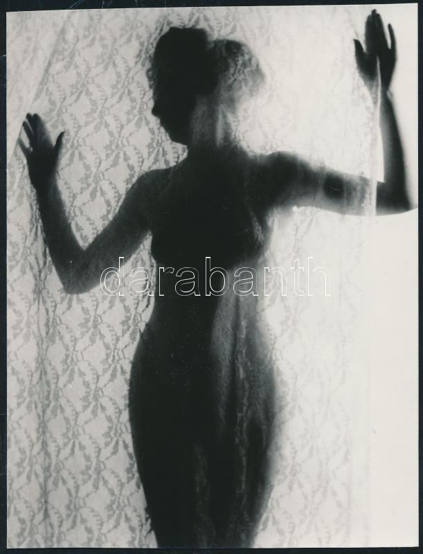 Beschreibung: cca 1960-1970 Függöny mögé rejtve, finoman erotikus fénykép, 17x13 cm /