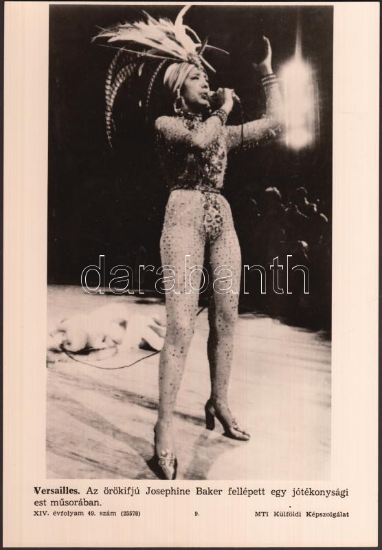 cca 1960 Josephine Baker fellépése egy jótékonysági est műsorában, MTI... https://www.darabanth.com/de/209-Fernauktion/209.0/Andere-Sammelgebiete/Foto~200367/cca-1960-Josephine-Baker-fellepese-egy-jotekonysagi-est-musoraban-MTI-foto-18x26-cm~II858538