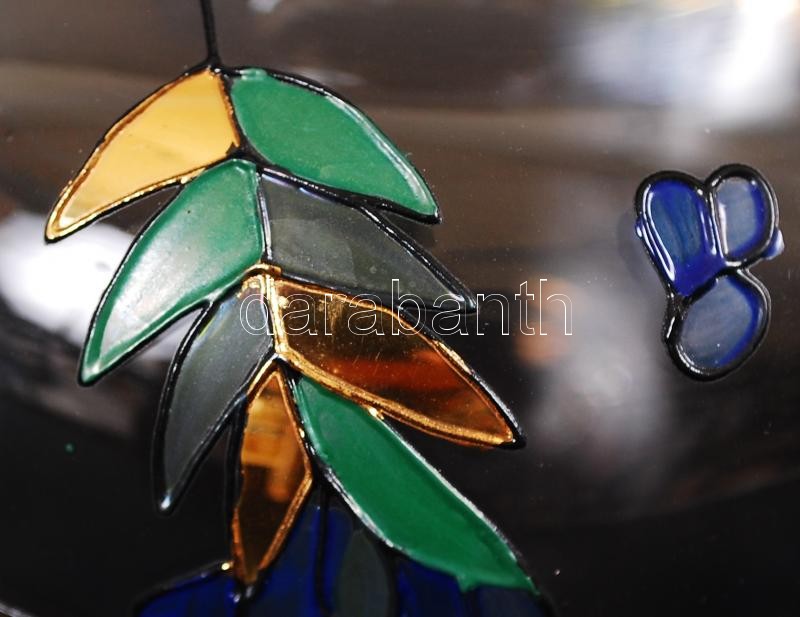 Beschreibung: Fedeles üvegtálaló, kézzel festett, hibátlan, m:13 cm, d:17 cm