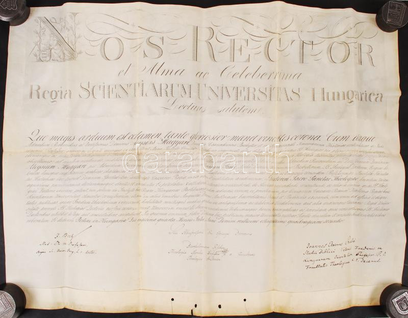 1842 Pest, Magyar Királyi Tudományos Egyetem által kiállított latin ny... https://www.darabanth.com/de/209-Fernauktion/209.0/Andere-Sammelgebiete/Historische-Dokumenten-Handschriften~200360/1842-Pest-Magyar-Kiralyi-Tudomanyos-Egyetem-altal-kiallitott-latin-nyelvu-teologiai-diploma-~II856623