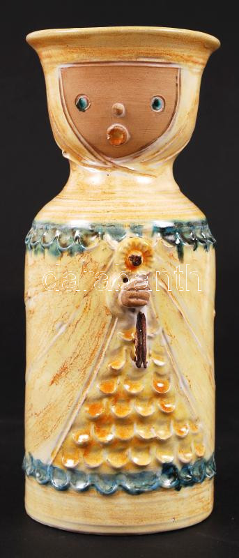 Beschreibung: Kiss Roóz Ilona (1920-2010): Gyertyatartós női figura. Festett mázas kerámia, kis lepattanással, jelzett, m: 19cm, d: 7cm