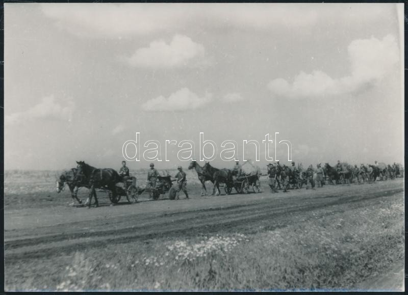 Beschreibung: 1942 Thöresz Dezső (1902-1963) Lóvontatta hadsereg. A 2. magyar hadsereg kivonulása a Don-kanyarhoz, 12x17 cm