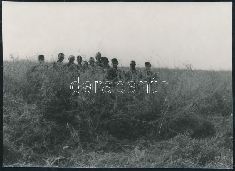 Beschreibung: 1942 Thöresz Dezső (1902-1963): Csoportkép a sztyeppén. A 2. magyar hadsereg kivonulása a Don-kanyarhoz, 12x17 cm