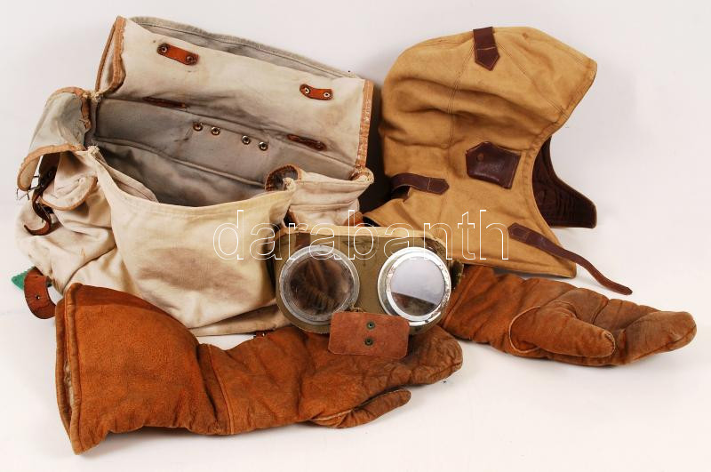 Katonai repülős sapka, szemüveg, kesztyű és szimataszatyor / flyer set https://www.darabanth.com/de/209-Fernauktion/209.0/Andere-Sammelgebiete/Militaria~600130/Katonai-repulos-sapka-szemuveg-kesztyu-es-szimataszatyor-flyer-set~II860979