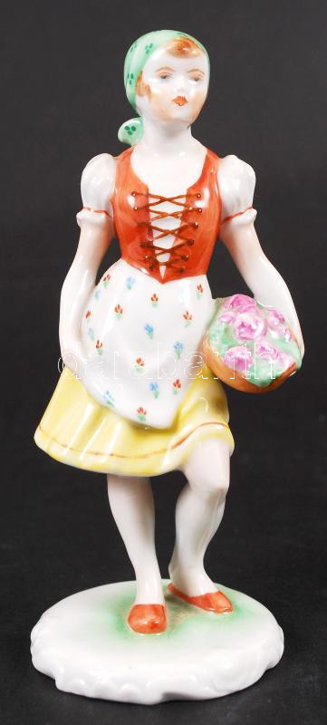 Beschreibung: Herendi virágkosaras lány, kézzel festett, jelzett, hibátlan, m:13 cm