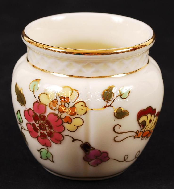 Kézzel festett, virágmintás Zsolnay mini kaspó 6 cm https://www.darabanth.com/de/209-Fernauktion/209.0/Andere-Sammelgebiete/Porzellan~200348/Kezzel-festett-viragmintas-Zsolnay-mini-kaspo-6-cm~II860805