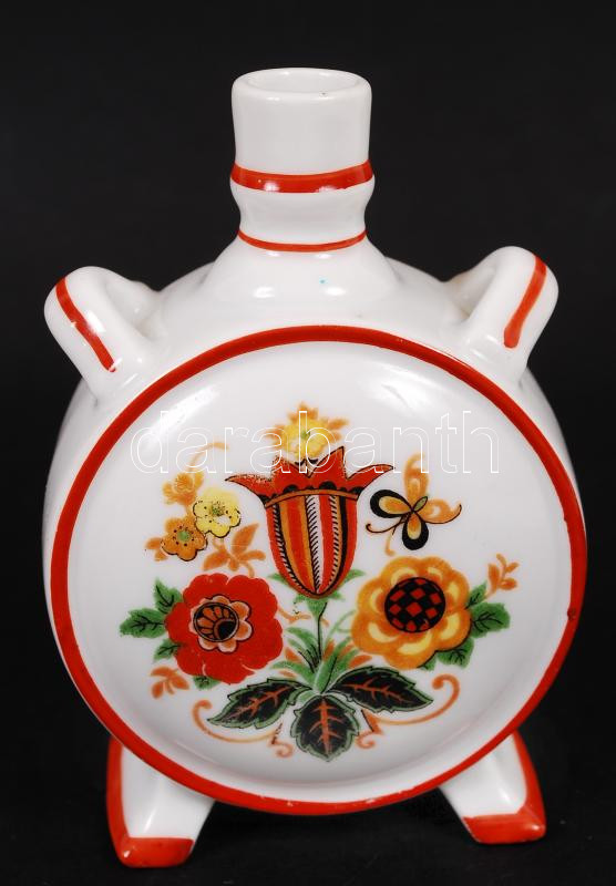 Beschreibung: Zsolnay porcelán kulacs, kézzel festett, virágmintás. Jelzett, mázhibás, m: 10 cm