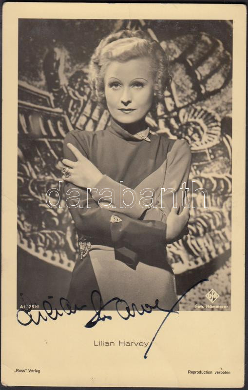 Lilian Harvey (1906-1968) brit-német színésznő saját kezű aláírása az ... https://www.darabanth.com/de/209-Fernauktion/209.0/Andere-Sammelgebiete/Signatur~200361/Lilian-Harvey-1906-1968-brit-nemet-szineszno-sajat-kezu-alairasa-az-ot-abrazolo-foto~II858372