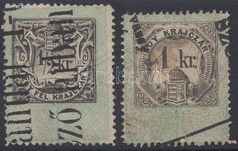 Beschreibung: 1868 Okmánybélyegek 1/2kr + 1kr hirdetménybélyegként felhasználva, ritka