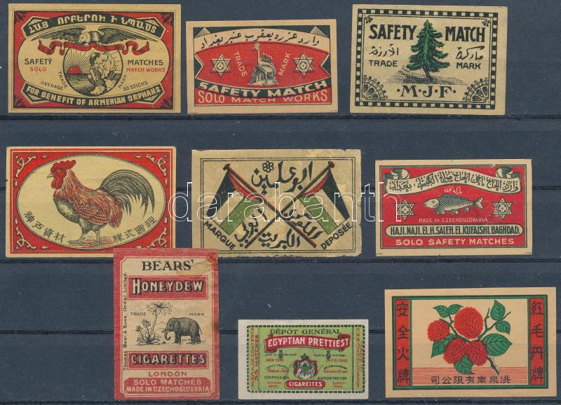 Beschreibung: 9 db különleges régi gyufacímke (örmény, kínai, egyiptomi stb.) /