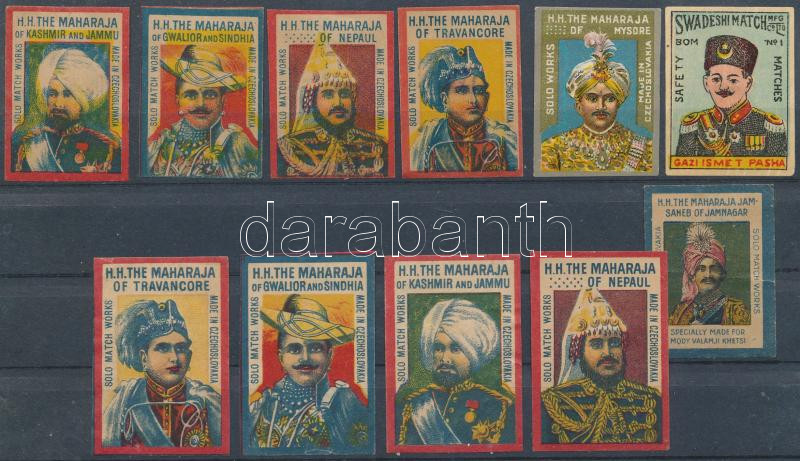 Beschreibung: Maharadzsák, 11 db egyedi gyufacímke /