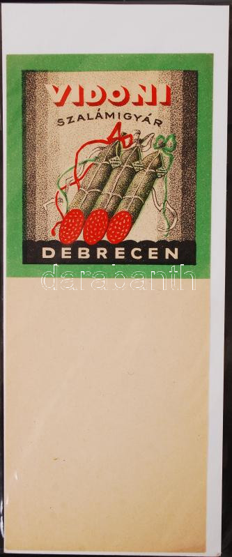Vidoni szalámigyár Debrecen, számolócédula https://www.darabanth.com/de/209-Fernauktion/209.0/Andere-Sammelgebiete/Werbungen~200364/Vidoni-szalamigyar-Debrecen-szamolocedula~II861944
