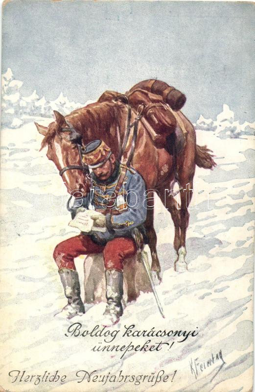 Beschreibung: WWI Hungarian military christmas greeting card, B.K.W.I. 933-9 s: K. Feiertag