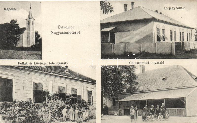 Nagycsömöte, Kápolna, Közjegyzőlak, Goldschmied és Pollák és Lővinger... https://www.darabanth.com/de/209-Fernauktion/209.0/Ansichtskarten/Ungarn~600005/Nagycsomote-Kapolna-Kozjegyzolak-Goldschmied-es-Pollak-es-Lovinger-fele-nyaralo~II861524
