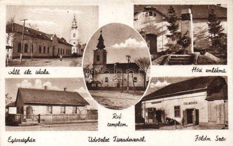 Beschreibung: Tiszaderzs, Egészségház, hősi emlékmű, földmíves szövetkezet
