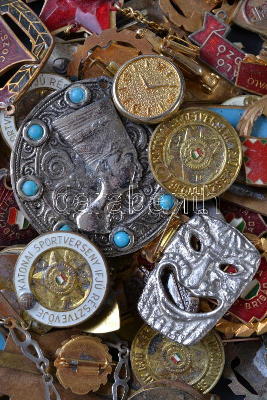 Beschreibung: Zacskónyi magyar és külföldi kitüntetés és jelvény, főleg a szocialista időszakból, zománcozottak is T:vegyes