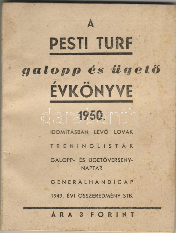 1950 A Pesti Turf évkönyve https://www.darabanth.com/de/21-Fernauktion/21.0/Andere-Sammelgebiete/~147/1950-A-Pesti-Turf-evkonyve~II39337