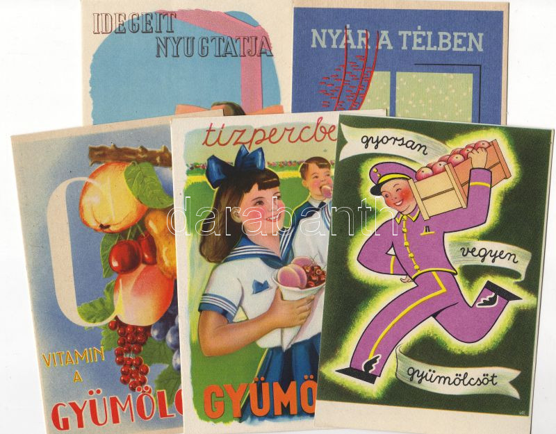5 db gyümölcsreklám képeslap https://www.darabanth.com/de/21-Fernauktion/21.0/Ansichtskarten/~129/5-db-gyumolcsreklam-kepeslap~II39797