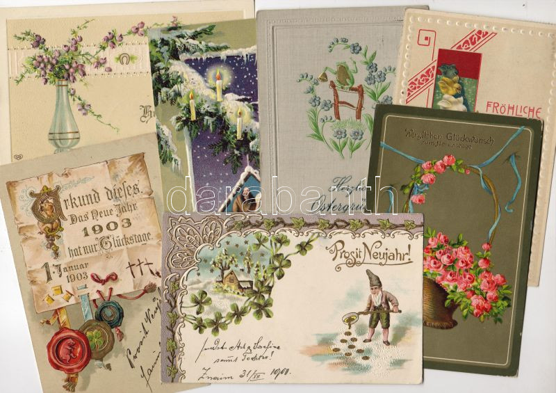 Beschreibung: 7 db századfordulós dombor litho, üdvözlőlap