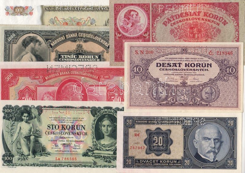 Beschreibung: Csehszlovákia 1926-34 10K, 20K, 50K, 100K, 500K, 1000K, 1000K Teljes sor! "Specimen" az 1932/1000K kivételével (T:II) mind T:I R!