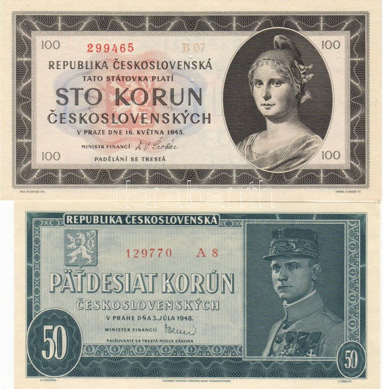 Csehszlovákia 1945-48 50K, 100K pár! 3-as pont lyukasztással T:I https://www.darabanth.com/de/21-Fernauktion/21.0/Numismatik/~136/Csehszlovakia-1945-48-50K-100K-par-3-as-pont-lyukasztassal-TI~II39241