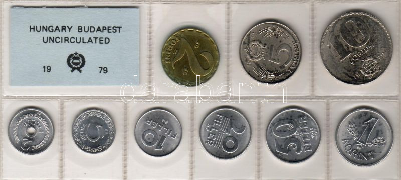 Beschreibung: 1979 Forint-fillér soreredeti műanyag kiszerelésben 2f-10Ft T:BU