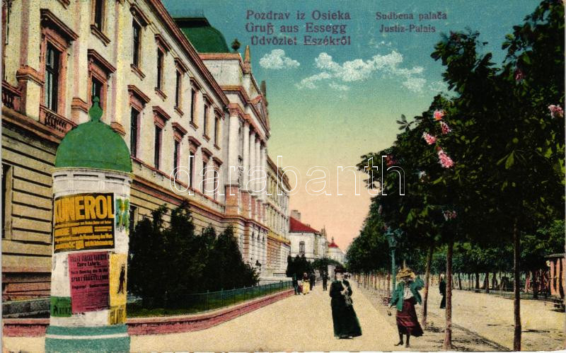Beschreibung: Eszék, Osiek; Igazságügyi palota, hirdetőoszlop / Sudbena palaca / justice palace
