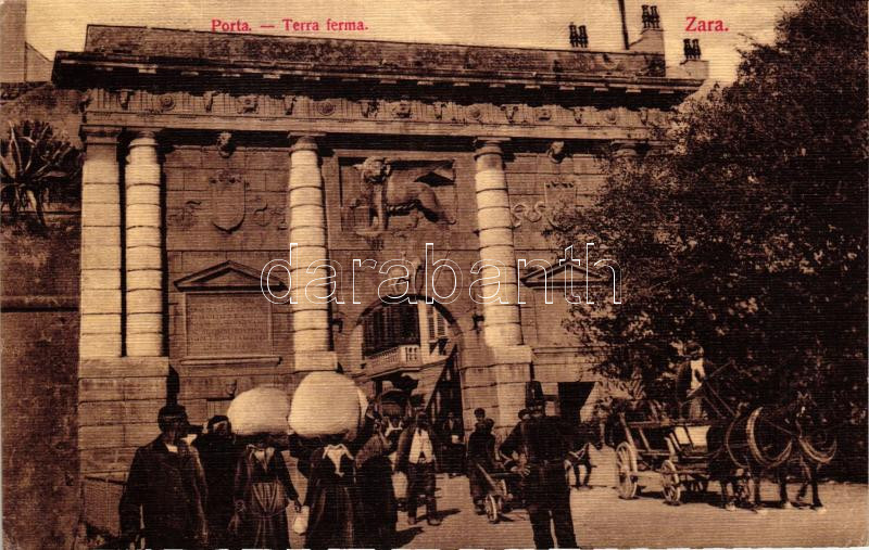 Zadar, Zara; Porta, Terra ferma / gates, policeman https://www.darabanth.com/de/21-Gross-Auktion/21.1/Ansichtskarten-Ungarn/Kroatien~7341/Zadar-Zara-Porta-Terra-ferma-gates-policeman~II1079955