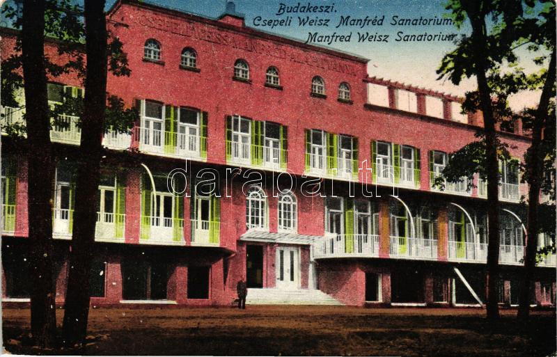 Budakeszi, Csepeli Weisz Manfréd Alapítványának szanatóriuma https://www.darabanth.com/de/21-Gross-Auktion/21.1/Ansichtskarten-Ungarn/Ungarn~7337/Budakeszi-Csepeli-Weisz-Manfred-Alapitvanyanak-szanatoriuma~II1081519